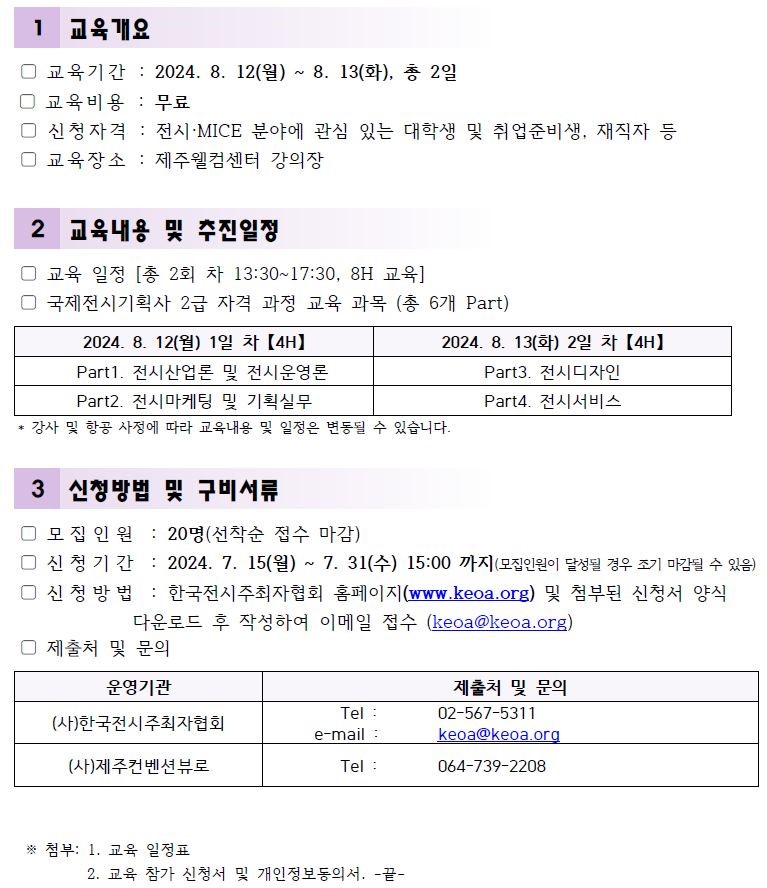 '2024 제주 MICE 아카데미' 국제전시기획사 2급 자격 과정 모집 공고 (~7/31)