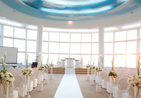 Experience the horizon where the blue sea and sky of Jeju meet, reminiscent of a wedding ceremony on a ship with an ocean view. Celebrate the precious moment of two lives becoming one in the enchanting dreamlike ocean view.
