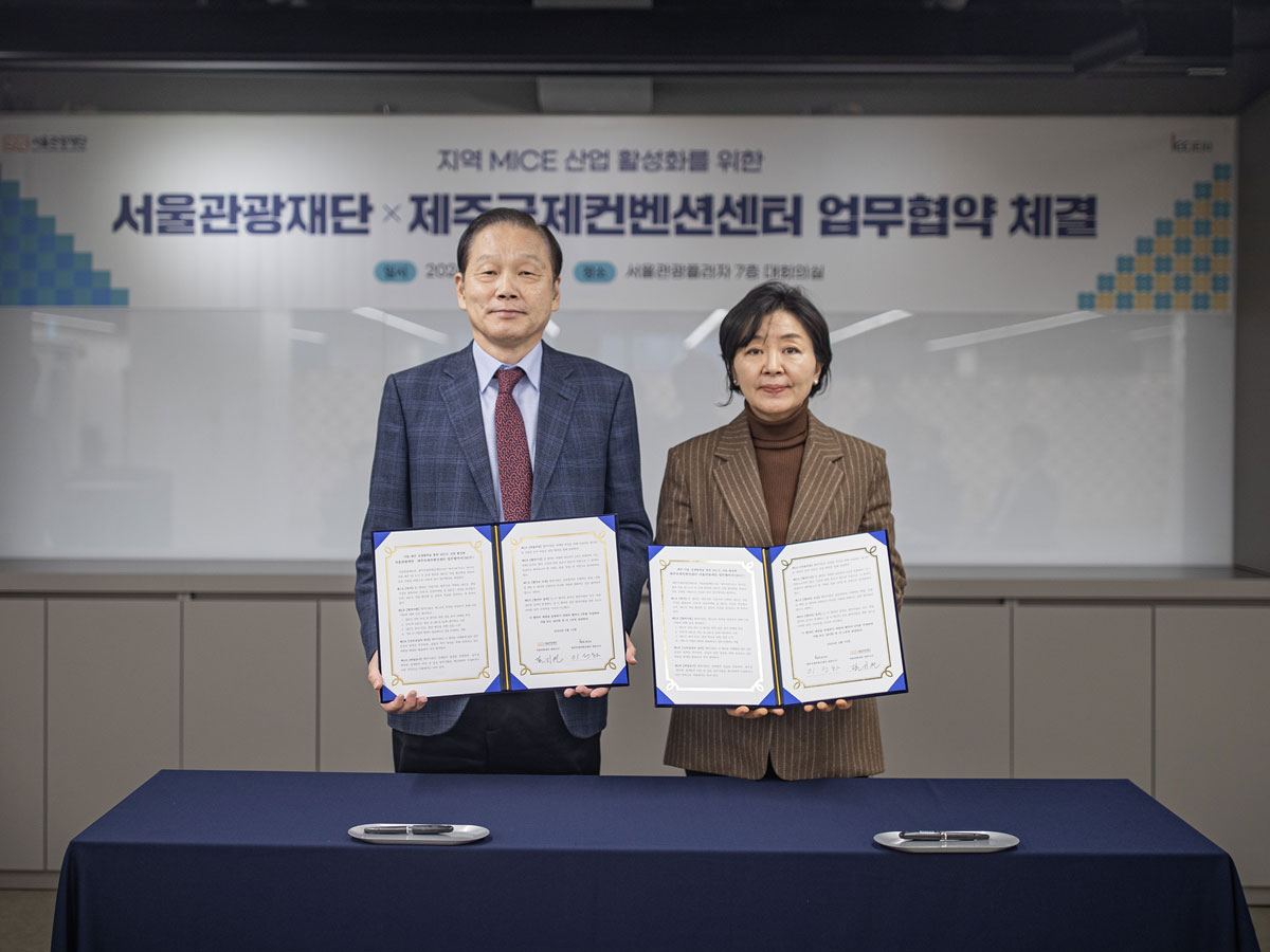 ㈜제주국제컨벤션센터(대표이사 이선화, 이하 ICC JEJU)와 서울관광재단 (대표이사 길기연)이 2월 15일(목) 서울관광재단에서 제주-서울 간 MICE 산업 활성화를 위한 업무협약을 체결했다고 밝혔다.