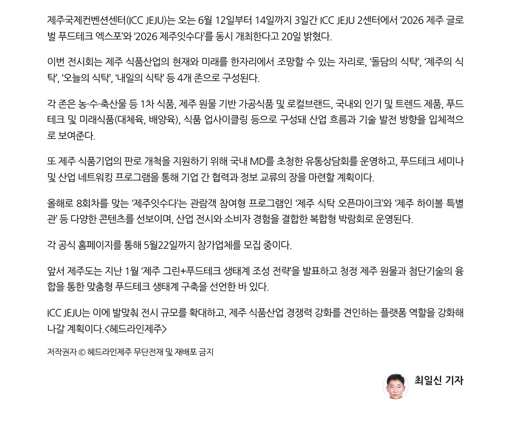 제주 식탁 한자리에...'푸드테크 엑스포.제주잇수다' 6월 동시 개최