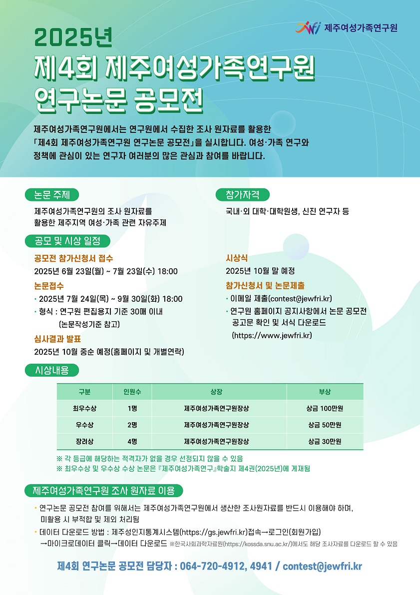 [제주여성가족연구원] 제4회 제주여성가족연구원 연구논문 공모전