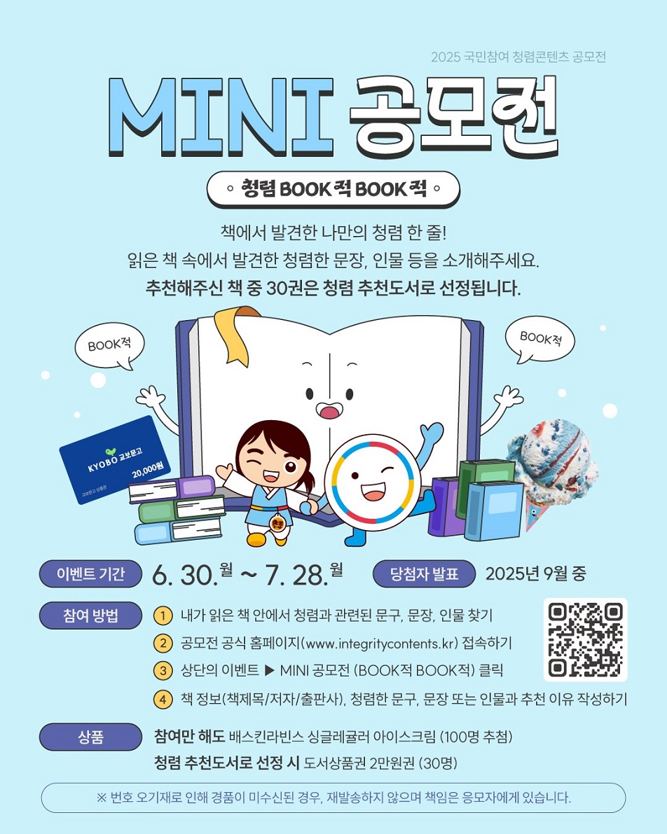 [국민권익위원회 청렴연수원] 2025년 제11회 국민참여 청렴콘텐츠 MINI 공모전(BOOK적 BOOK적)