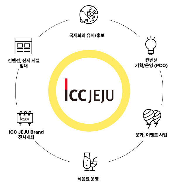 - 휴양과 비즈니스가 공존하는 동북아 최고의 리조트형 컨벤션센터 ICC JEJU에서는 각 분야별 전문가들이 최상의 MICE 복합서비스 를 제공합니다.