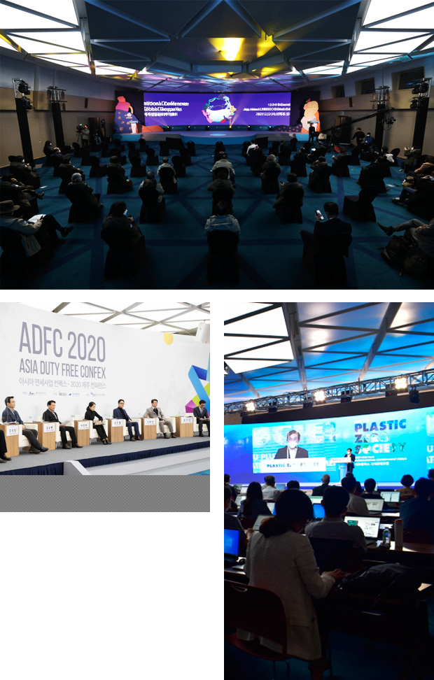 2009년 한·아세안 특별정상회의, 2010년 한·일·중 정상회의, 평화와 번영을 위한 제주포럼 등 다양한 온·오프라인 국제회의를 개최하며 제주 MICE 산업 발전에 기여했습니다.